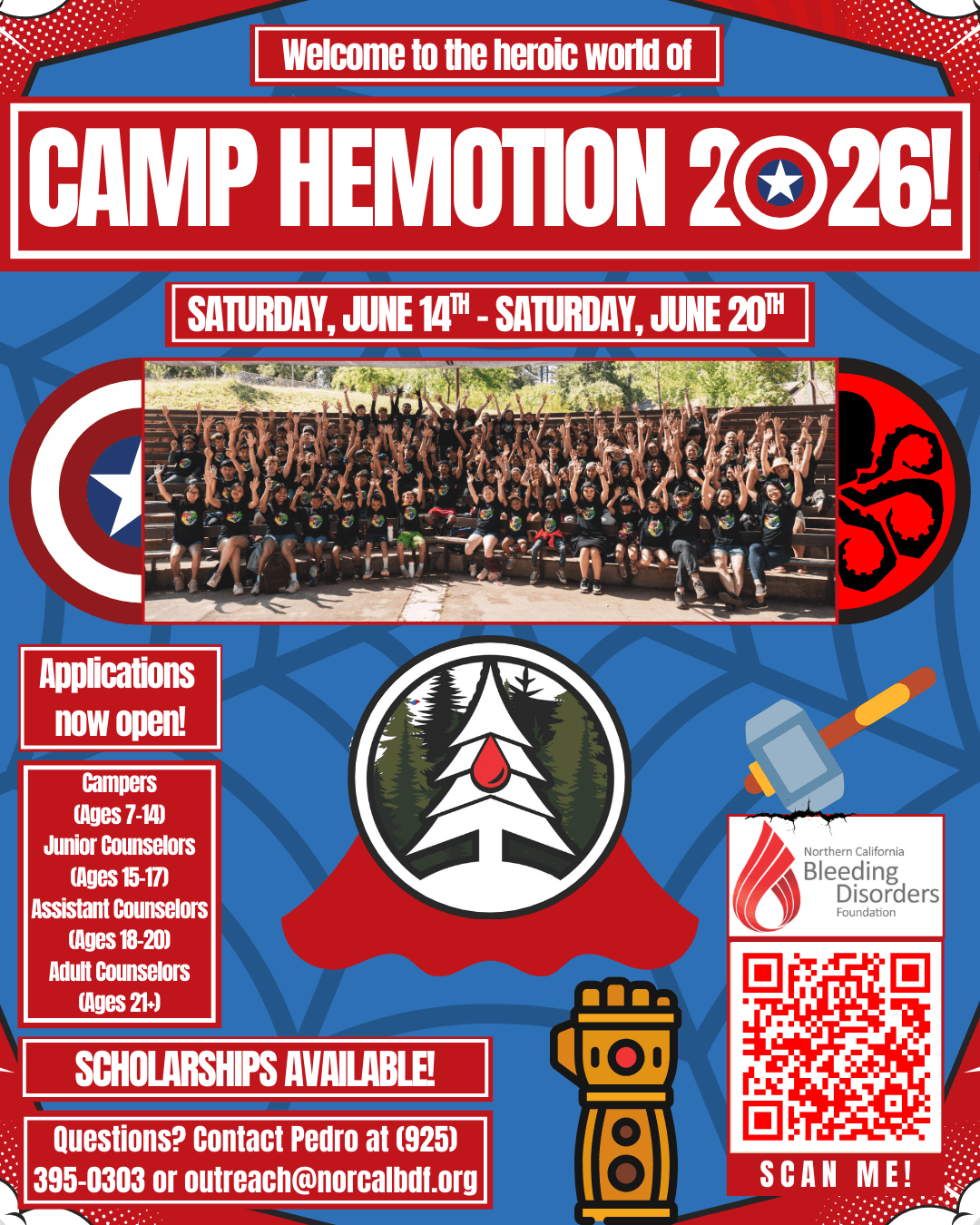 It’s time for Camp Hemotion to assemble! In 2026, we’re bringing campers together for a Marvel Superhero themed week where participants team up to form lifelong friendships, build confidence, and strengthen the skills they need to manage their condition and thrive.